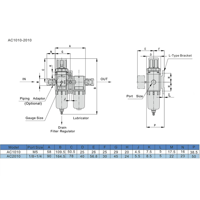 Блок подготовки воздуха AC 2010-02, 1/4" 500 л/мин, TLP-AC2010-02 TITAN LOCK
