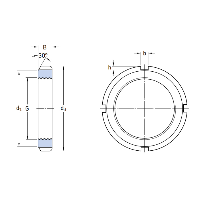 Гайка KM 14 SKF - это комплектующий элемент, который вводится в работу совместно с втулкой H214 и стопорным кольцом MB14.