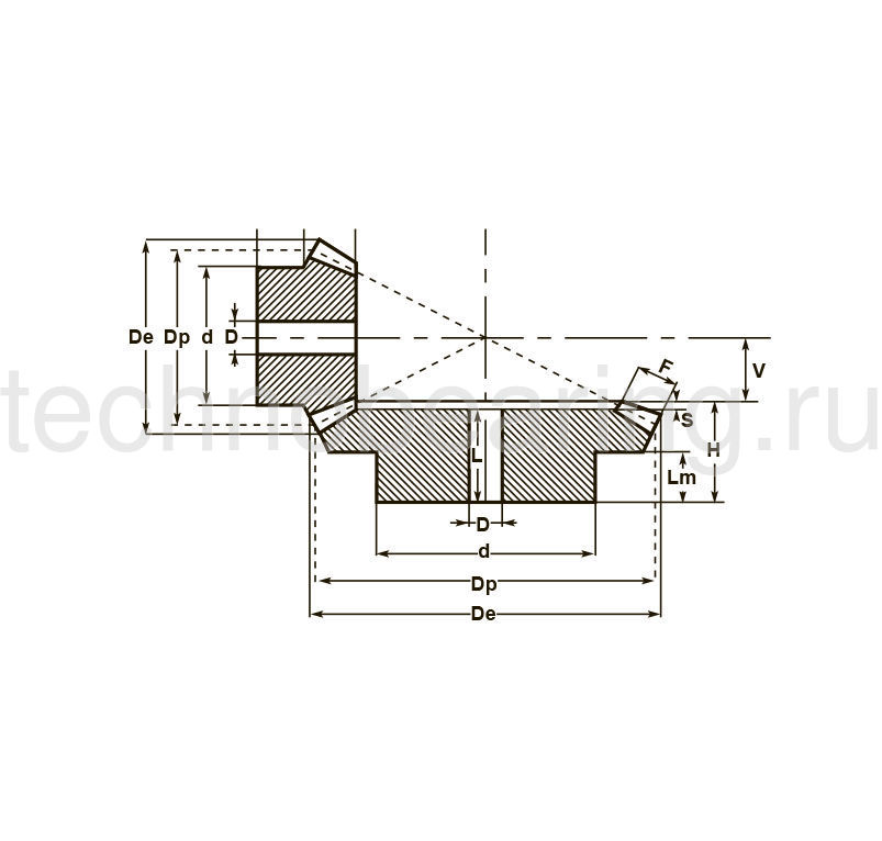 Диаметр делительной окружности z2 Dp, мм