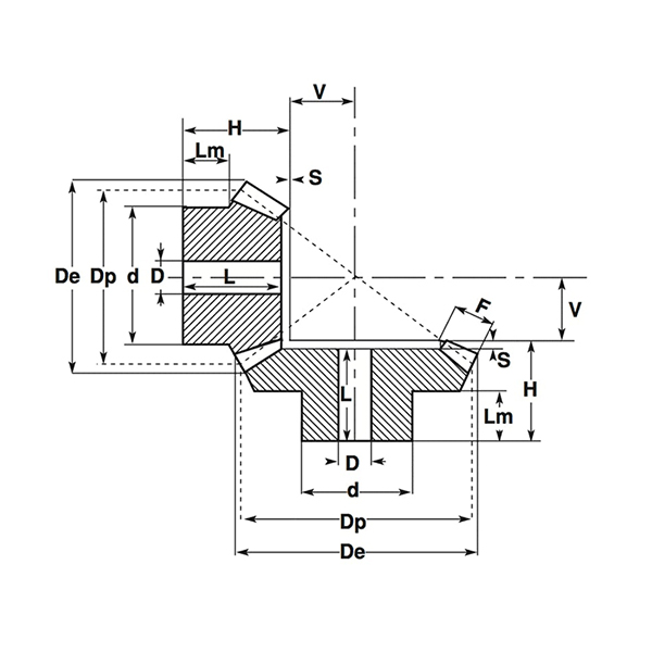 Коническая зубчатая пара, передат. число: 1:1, M=1,5, Z1=16, Z2=16 C27B161 Sati