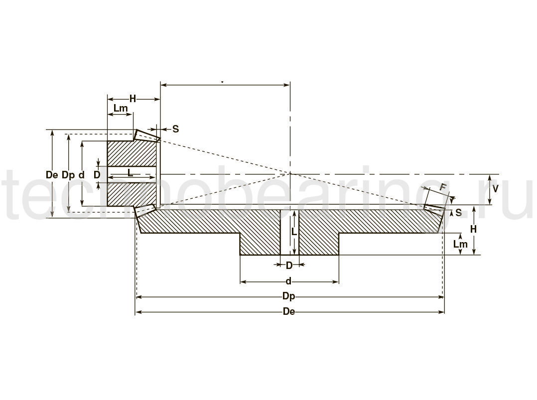 Коническая зубчатая пара, передат. число: 1:4, M=5, Z1=16, Z2=64 C32A644 Sati