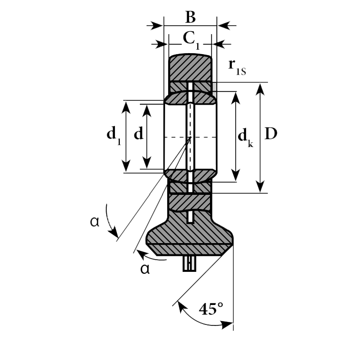 Корпус шарнирного наконечника TAC250 ISB изготовлен из закаленной стали и имеет встроенный подшипник скольжения. Пара трения – сталь/сталь. В конструкции предусмотрен смазочный ниппель для обслуживания наконечника.