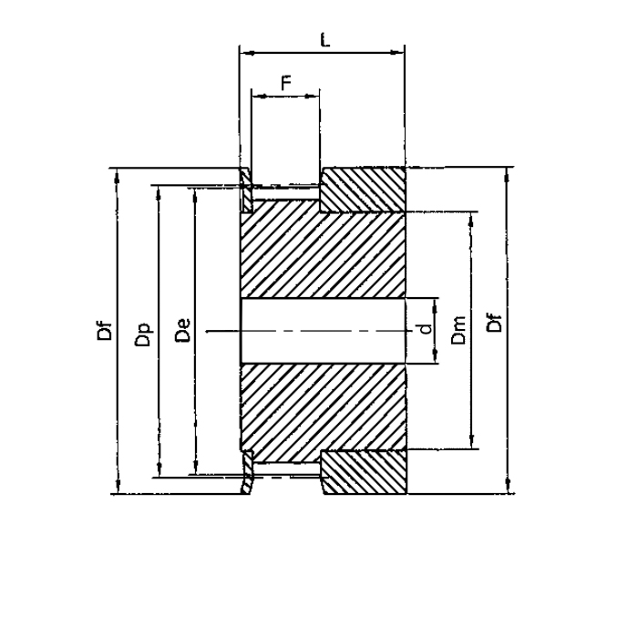Имеет ступицу для доработки под посадку на вал или другую часть трансмиссии и черновое отверстие под расточку под требуемый диаметр отверстия.