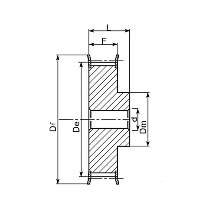 Имеет ступицу для доработки под посадку на вал или другую часть трансмиссии и черновое отверстие под расточку под требуемый диаметр отверстия.