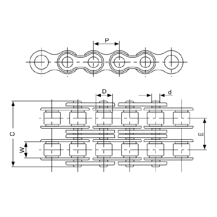 Цепь приводная роликовая 24B-2 ISKRA это цепь из стали с двумя рядами роликов и стандартным типом звеньев.