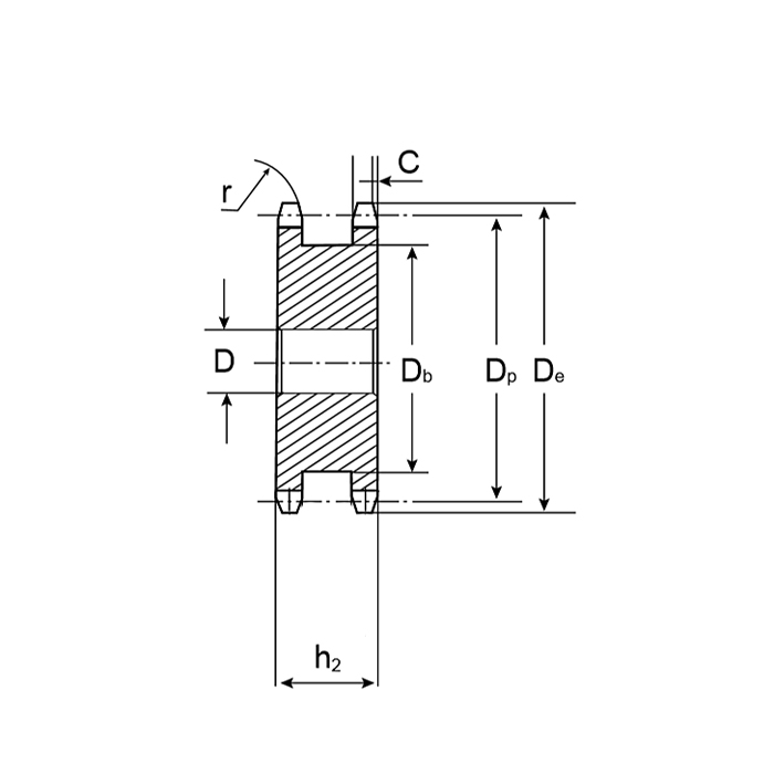 Звездочка двойная для однорядных цепей: 16B-1, Z=14, 1" x 17,02 mm DS12014 ISKRA произведена из стали С45Е. Применяется в цепной передаче с однорядной цепью 16B-1.
