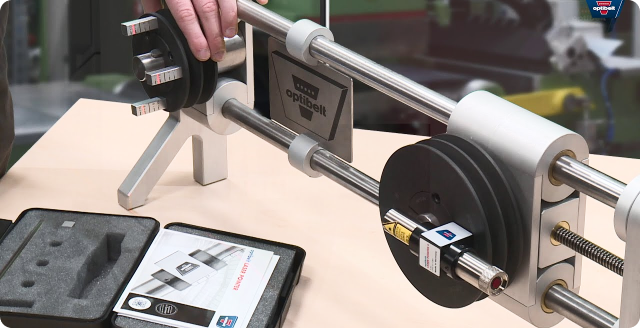 При проведении работ по лазерной выверке шкивов используется прибор Optibelt Laser Pointer II, позволяющий быстро и просто определить осевое смещение и угловое отклонение шкивов.