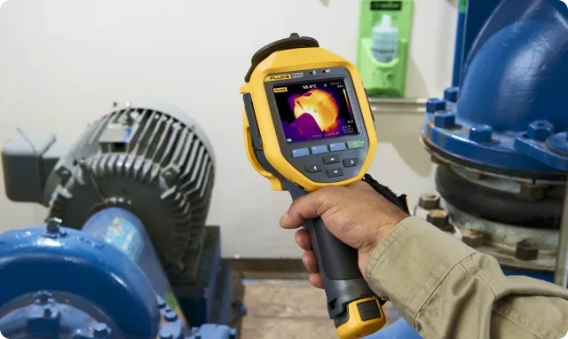 При проведении работ по тепловизионному обследованию оборудования используется Fluke Ti110, самый легкий, самый прочный и самый простой в использовании профессиональный промышленный тепловизор. Инновационные возможности и функции тепловизора Fluke Ti110 позволяют быстрее и эффективнее проводить обследования в инфракрасном диапазоне и составлять подробные технические отчеты о выявленных проблемах.